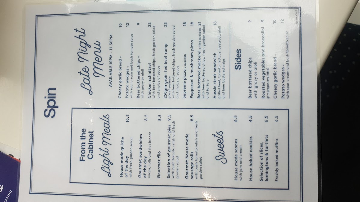 Spin Cafe Menu